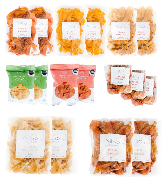 Chips de jícama, camote y coliflor horneada 6 minimix box todos los sabores by xilzas |botana saludable| healthy snacks| snacks saludables|